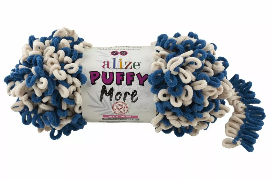 Pehmeä Alize Puffy More on uusi jännittävä versio ihanan pehmeästä sormineulottavasta Puffy-lenkkilangasta. Puffy More -vyyhdissä on kontrastiväriset lenkit, joita neulomalla voit muodostaa jännittäviä kuviopintoja. Helpolla tekniikalla teet käden käänteessä näyttäviä torkkupeittoja, tyynynpäällisiä ja muita upeita sisustustöitä omilla tai valmiilla kuvioilla ja kuoseilla.