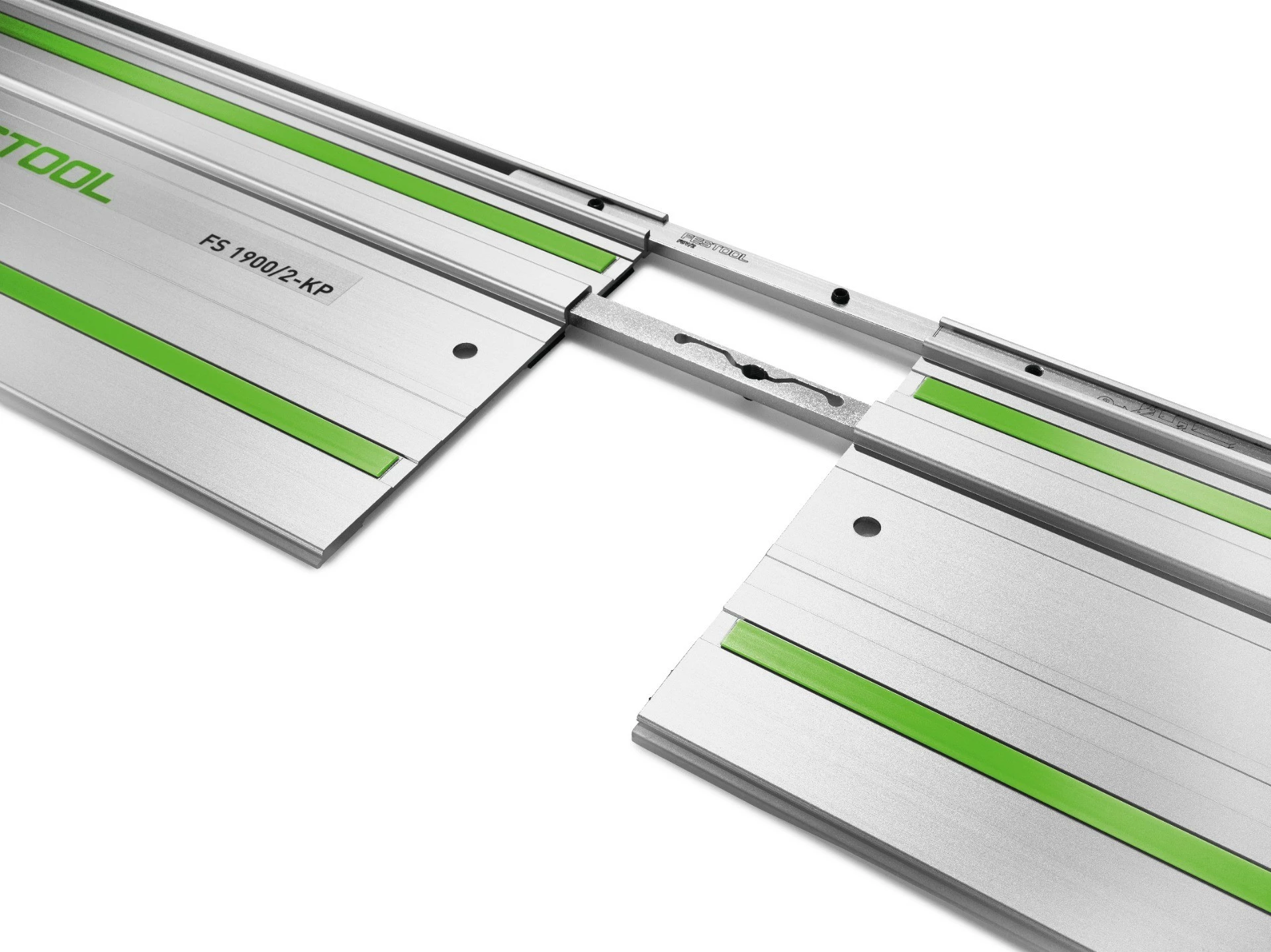 Kaksi liitoskappaletta takaavat kahden ohjainkiskon suoran ja tukevan yhdistämisen. Itsekohdistavan toiminnon avulla yhdistäminen on nopeaa ja helppoa. Liitoskappaleet ovat yhteensopivia kaikkien Festool-ohjainkiskojen kanssa. Mahdollistaa tarkan sahaamisen kahden tai useamman yhdistetyn ohjainkiskon koko pituudelta.