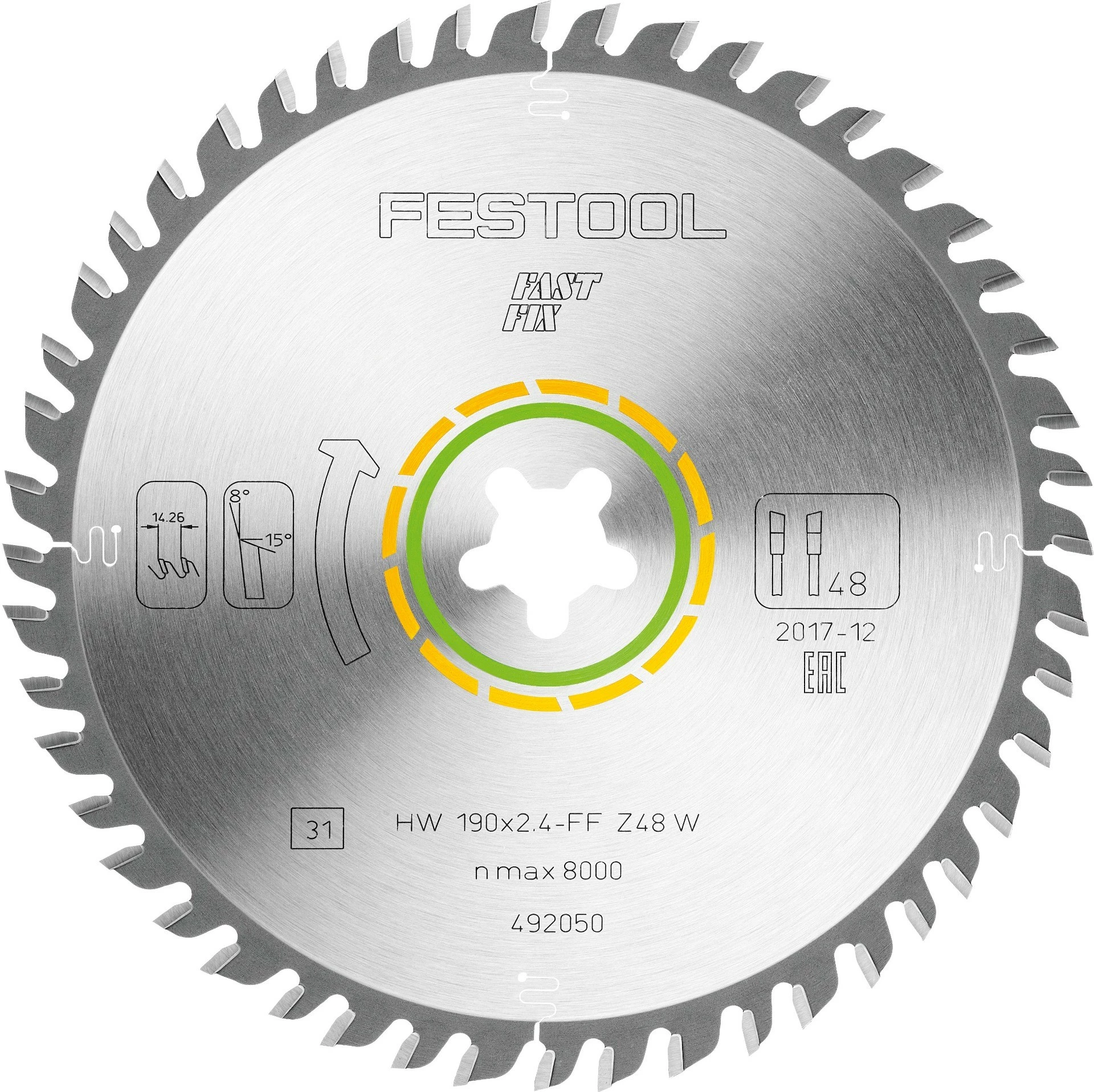 - Festoolin värikoodauksen avulla oikea sahanterä löytyy nopeasti: keltainen väri viittaa puun työstöön