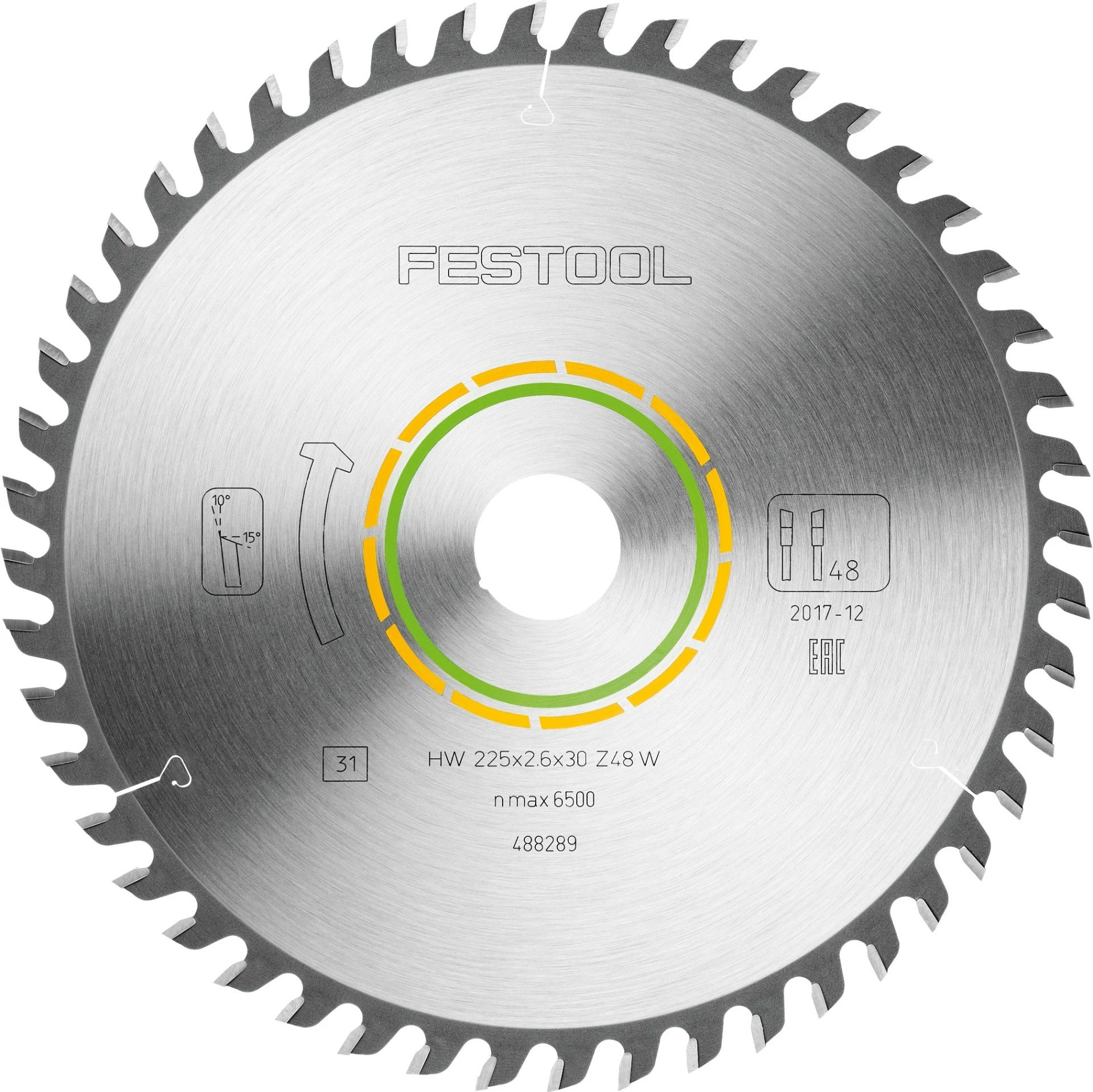 Festoolin värikoodauksen avulla oikea sahanterä löytyy nopeasti: keltainen väri viittaa puun työstöön