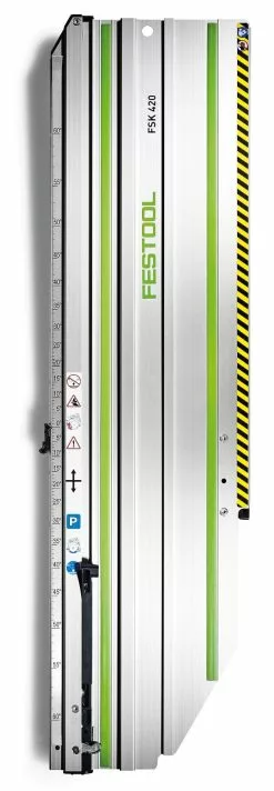 - Luotettava kiinnitys työkappaleisiin ruuvipuristimella, jonka voi asentaa kätevästi katkaisukiskon uraan
