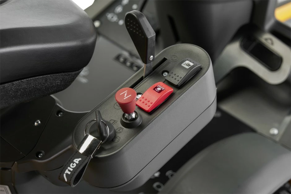 Quick Flip -mekanismin avulla puhdistat leikkuulaitteen helposti. Kompakti hallintapaneeli istuimen vieressä sisältää hyödyllisiä ominaisuuksia, kuten sähköisen leikkuukorkeuden säädön. Mukavuutta lisäävät mukavuusistuin alaselän tuella ja iso jalkatila.