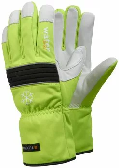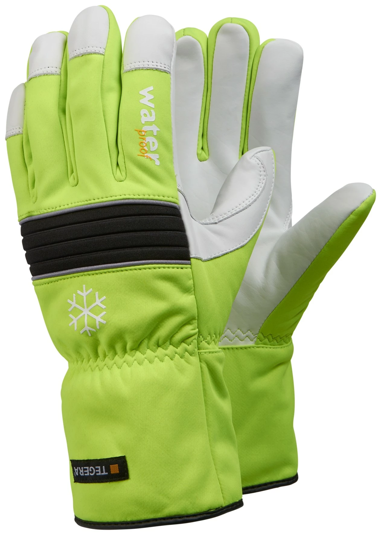 Tegera 299 talvikäsineet ovat erinomaiset työhanskat talvikäyttöön. Erittäin lämmin 150g Thinsulate™ vuori yhdistettynä vedenpitävään kalvoon pitävät kätesi taatusti lämpimänä ja kuivana kurjissakin olosuhteissa. Kämmenpuoli sekä sormenpäät ovat vahvistettu aidolla ja kestävällä nahalla, joka takaa erinomaisen työotteen. Hyvin näkyvä huomioväri, sekä kämmenselän heijastinviivat lisäävät työturvallisuutta.