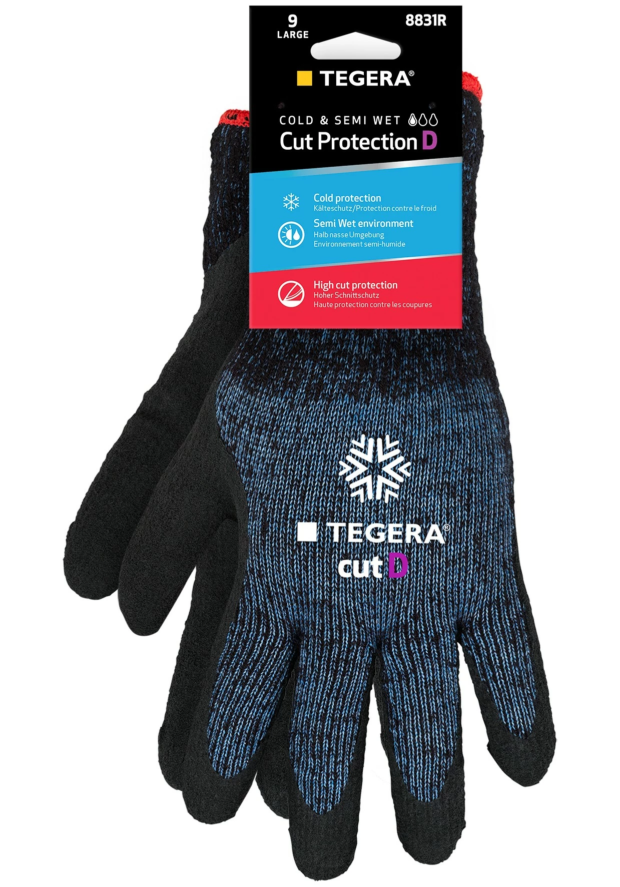 Tegera 8831R on kestävä ja lämmin viiltosuojattu talvityökäsine. Tegera 8831R on erittäin mielyttävän tuntuinen ja pehmeä kädessä, sekä sen kämmenen lateksipinnoite tarjoaa erinomaisen pidon työskennellessä. 10 gg ja CRF-viiltosuojatekniikka tarjoaa turvaa viiltoja vastaan.